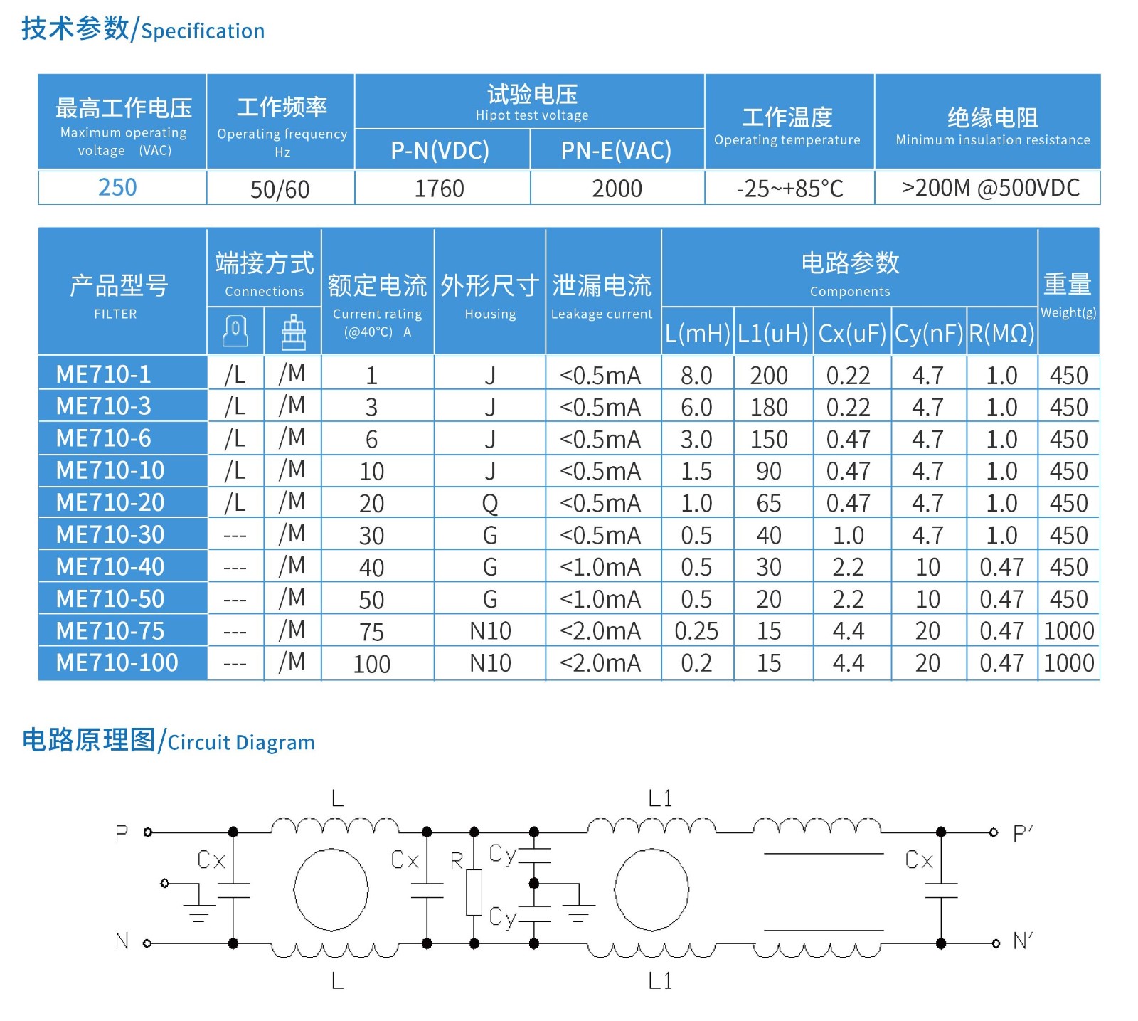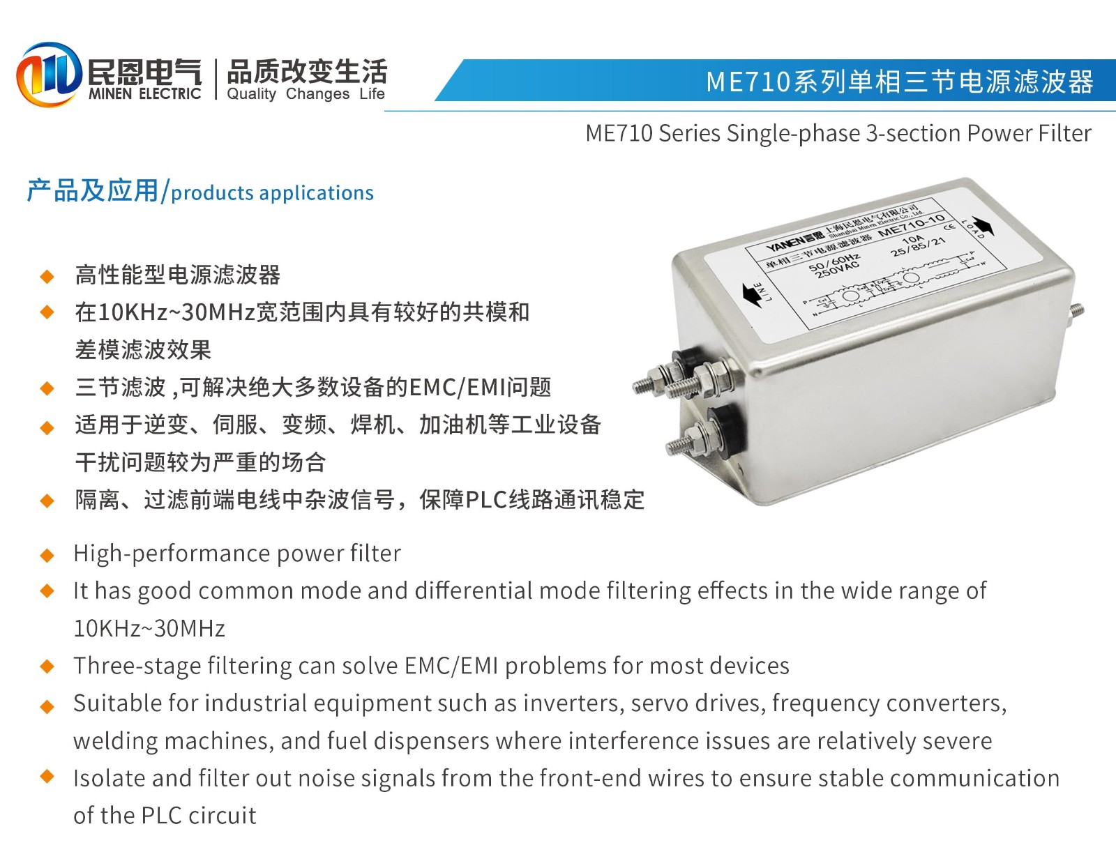 ME710系列單相三節高性能型電源濾波器