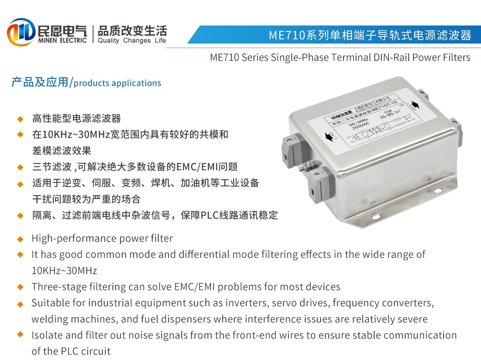 高性能型電源濾波器,在10KHz~30MHz寬范圍內具有較好的共模和差模濾波效果,三節濾波,可解決絕大多數設備的EMC/EMI問題