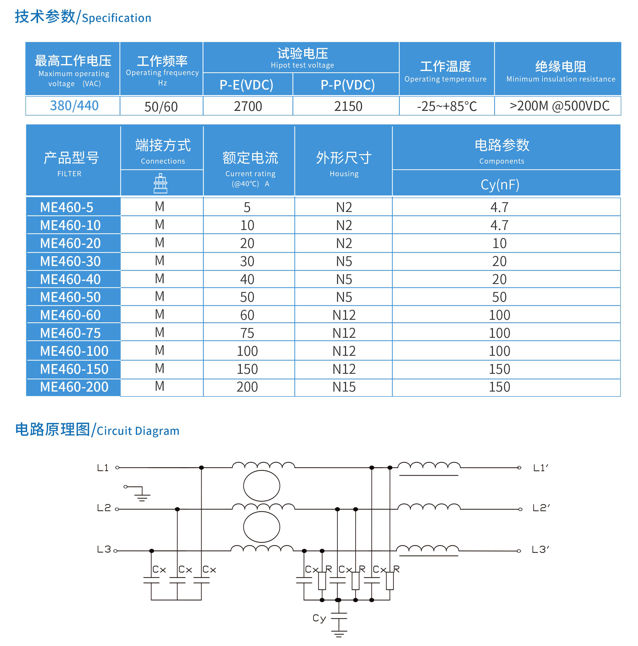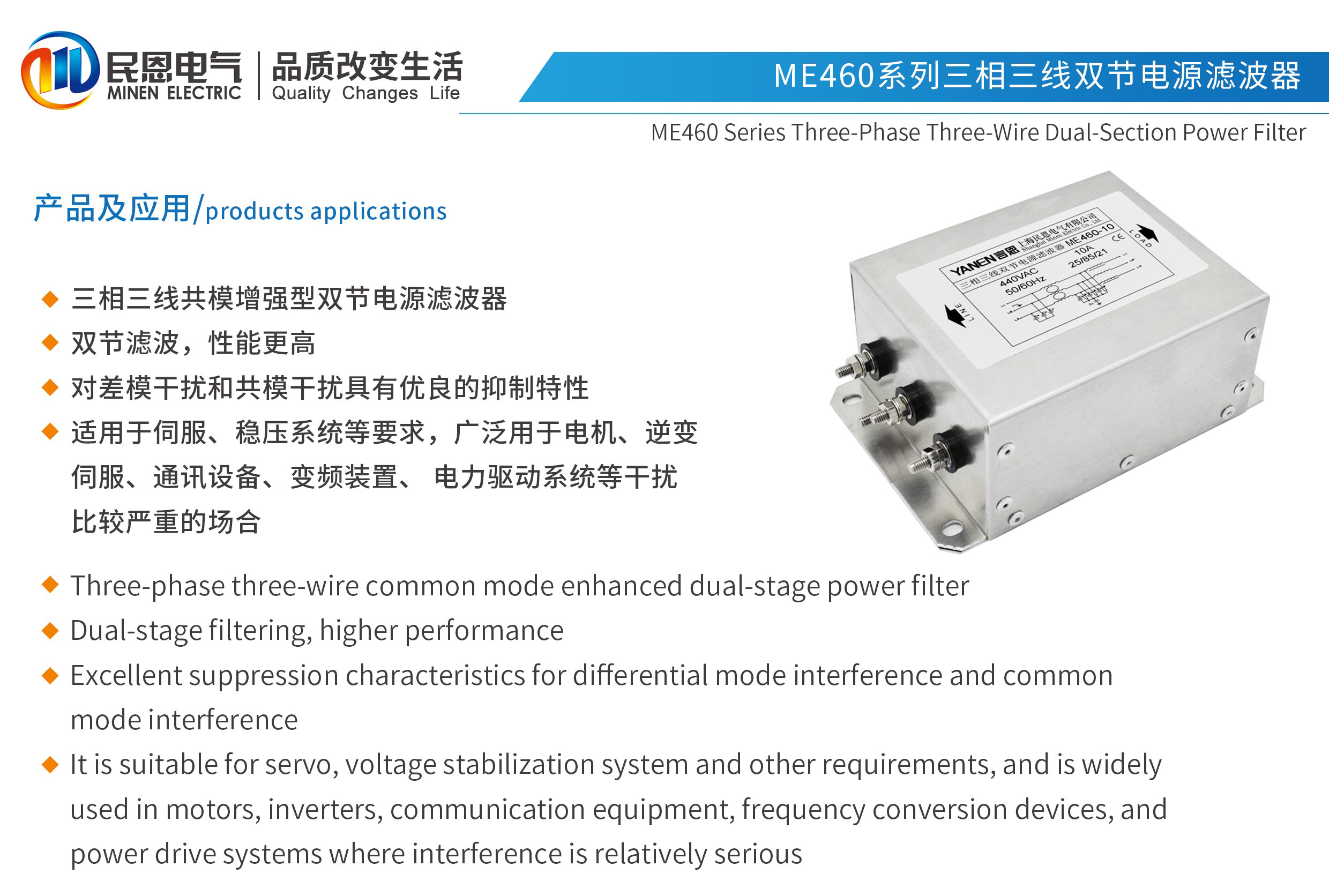 ME460系列雙節三相三線電源濾波器