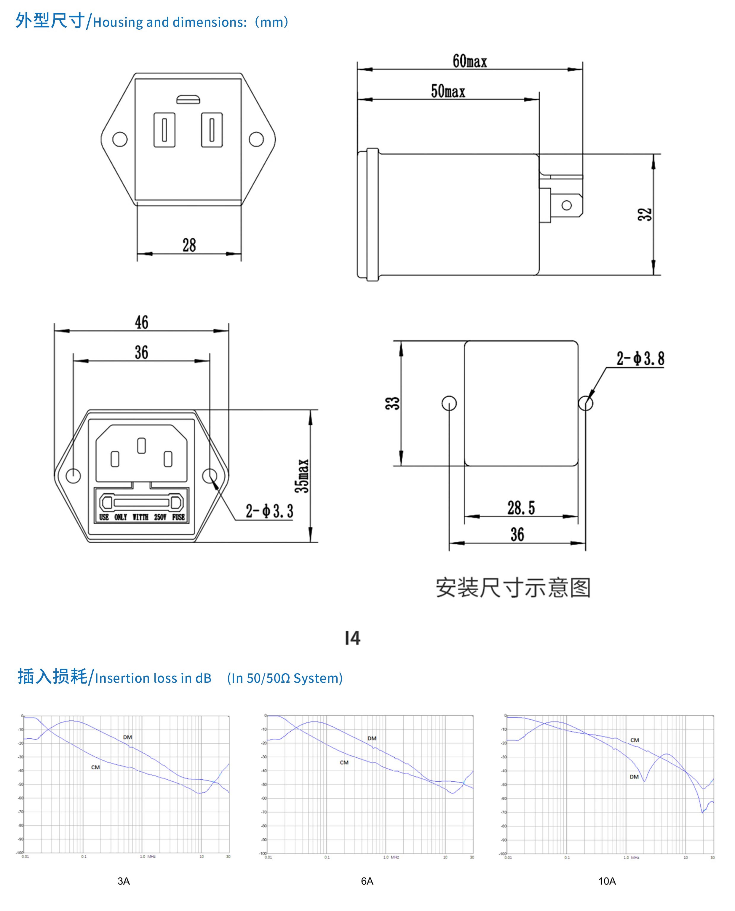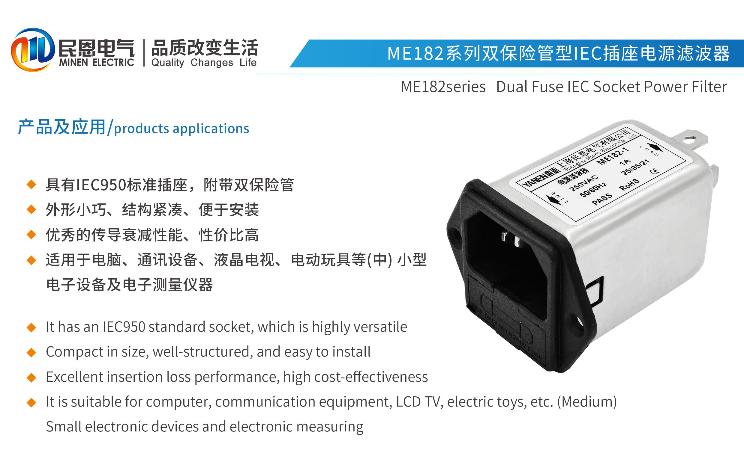 具有IEC950標準插座,附帶雙保險管,外形小巧、結構緊湊、便于安裝,優秀的傳導衰減性能、性價比高。