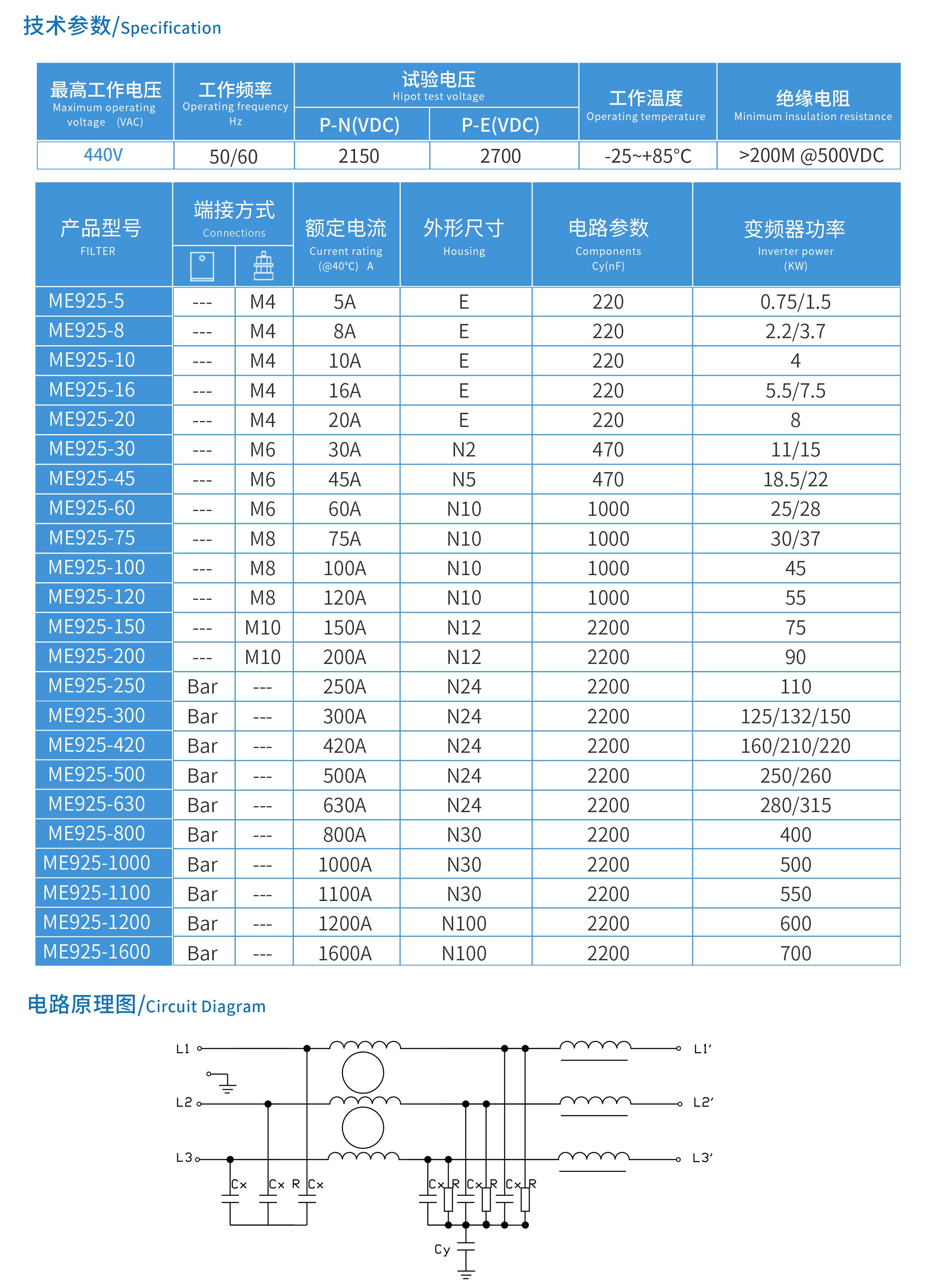變頻專用濾波器 伺服專用濾波器 正弦波濾波器 無源諧波濾波器 APF有源濾波器 DV/DT濾波器 三相三線濾波器 三線四線濾波器 單相電源濾波器 直流電源濾波器 IEC插座濾波器 光伏逆變器專用濾波器 醫療專用電源濾波器
