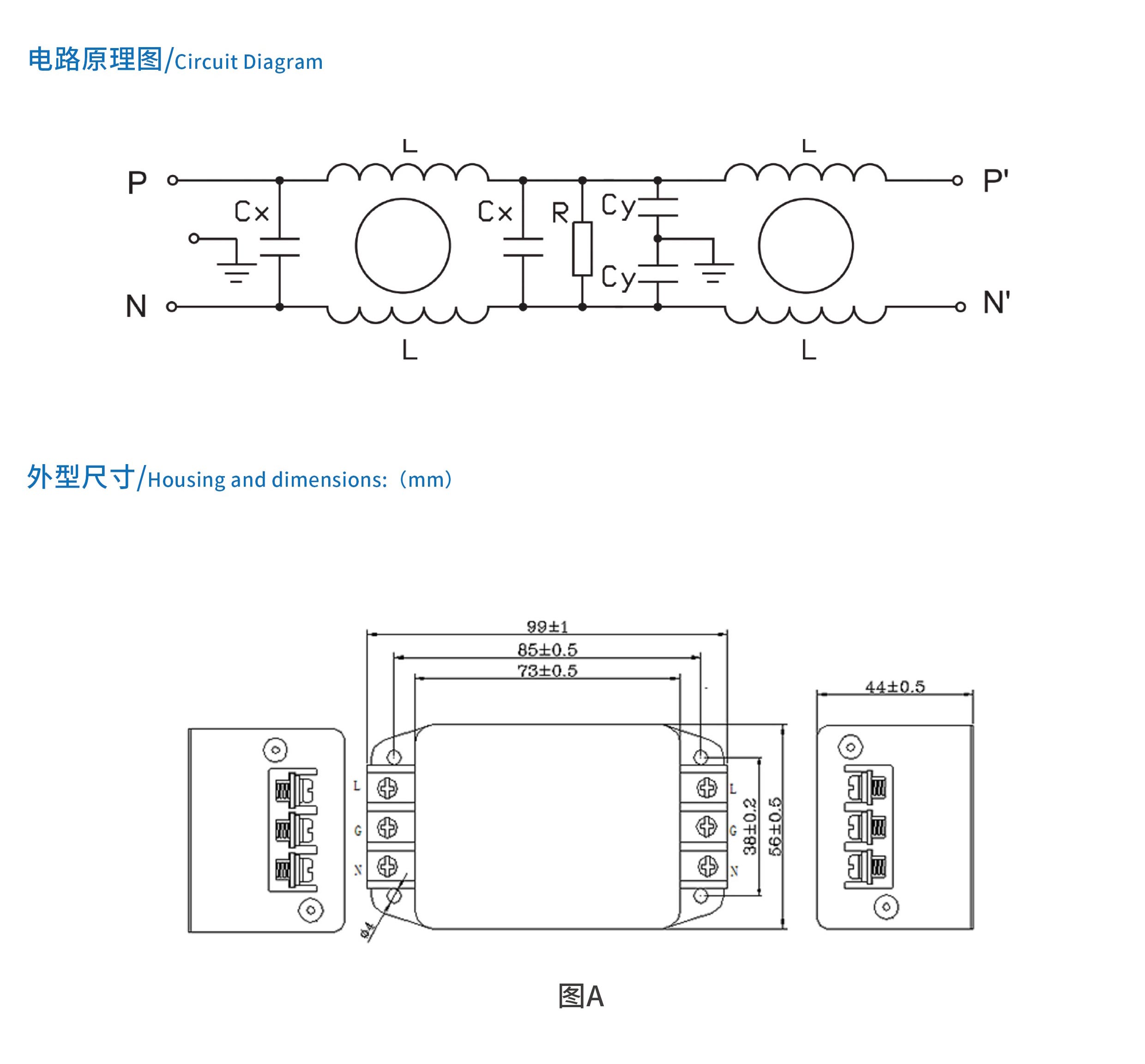 雙節濾波,共模濾波效果優良,泄露電流低,應用廣泛,適應各種阻抗匹配,對快速瞬變脈沖群 (EFT) 等實 驗具有良好的輔助效果。